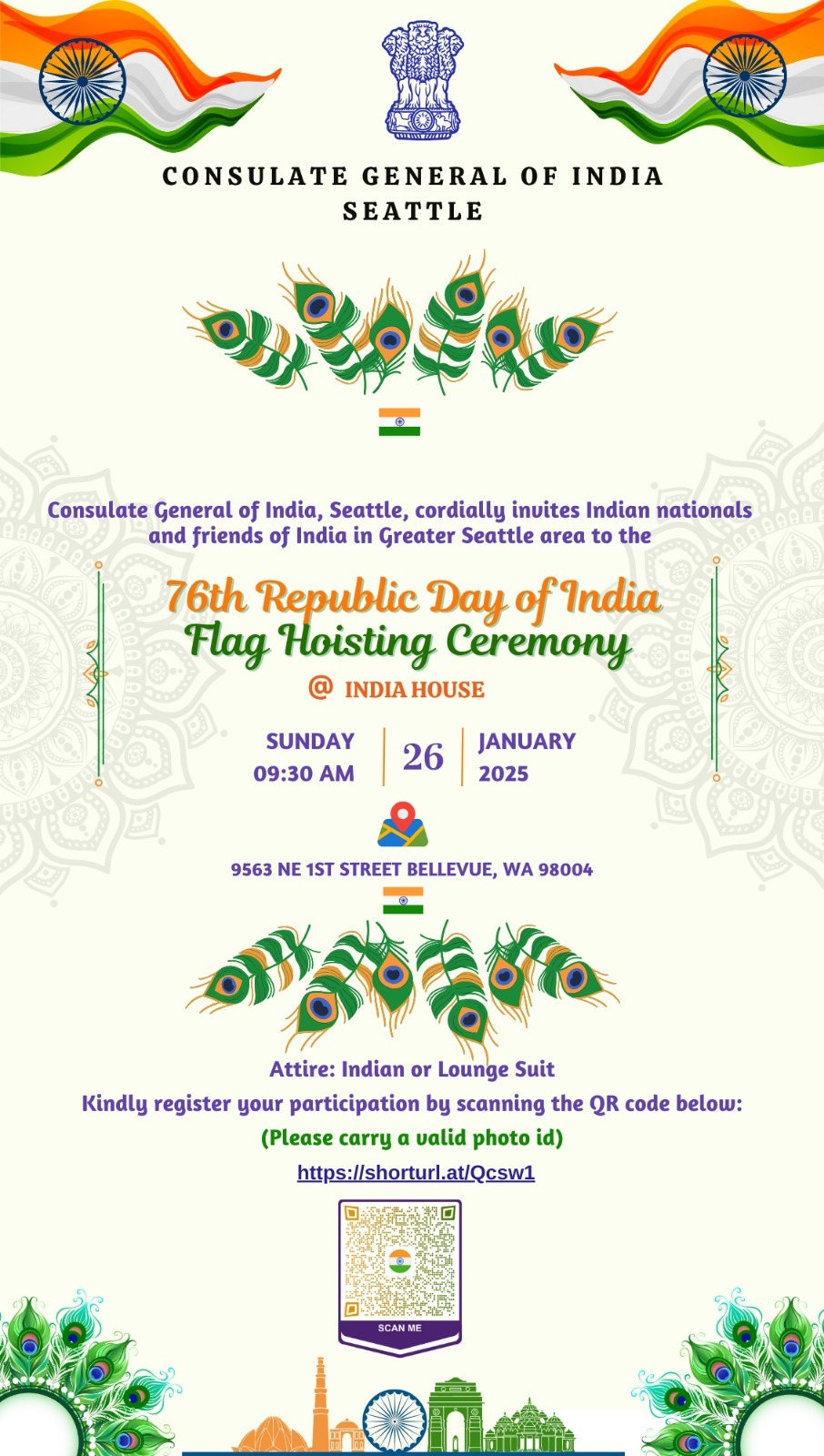 Invitation for 26th January 2025 – 76th Republic Day of India Flag Hoisting Ceremony at India House (Please register as per details here)